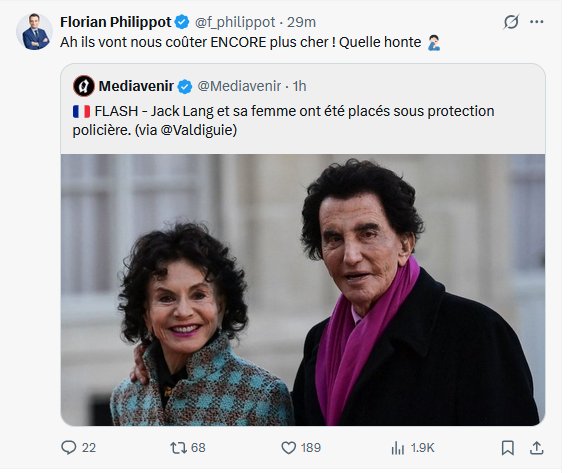 Le patron des RG de l’époque évoque Lang comme « hôte des petits garçons » là-bas. Jack Lang nie tout lien criminel, mais les « Epstein Files » confirment des invitations à des événements d’Epstein en 2019, avec des allégations de présence de prostituées. Et un tweet de @VirusWar liste Lang parmi les invités à ces soirées parisiennes en compagnie de « jeunes putes de l’Est ».