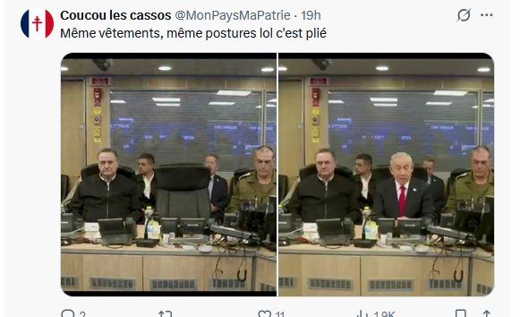 Mais ce qui est sûr, est que ce genre de document (stupide et au final risible) n’est pas un bon élément capable de donner du baume au cœur du sioniste du quotidien, loin des centres de décisions, qui eux-mêmes semblent se décomposer. Comme le dit un autre anonyme « une vraie apparition et une participation aux conseils de guerre seraient plus efficaces pour le moral. Sur les réseaux il y a aussi des Israéliens qui doute de la vitalité de leur chef ».