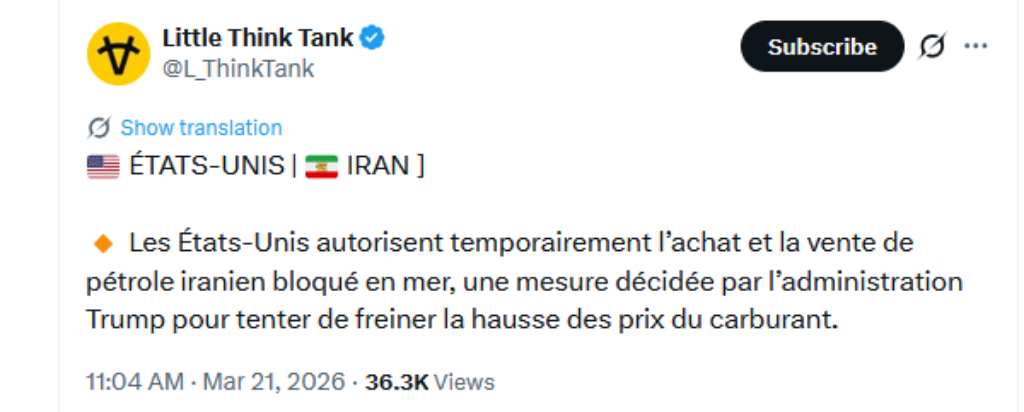 Réseau International via Le Grand Soir, ce 21 mars 2026