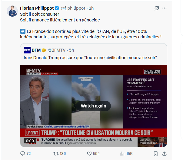 En attendant, une pétition contre cette proposition de loi auprès de l’Assemblée nationale dépasse actuellement 300.000 signatures. Certains diront que c’est peu. Mais quand on voit ce que donne le soutien à cette proposition de loi des « élites » politiques, artistiques, les mêmes qui ont soutenu les mesures liberticides et discriminatoires lors de l’épisode covidiste, et soutiennent le bandérisme ukrainien ainsi que la barbarie sioniste et les attaques des sociopathes trump et mileikowky dit netanyahou contre l’Iran, il y a où rire, si je puis me permettre de parler de rire en la circonstance !