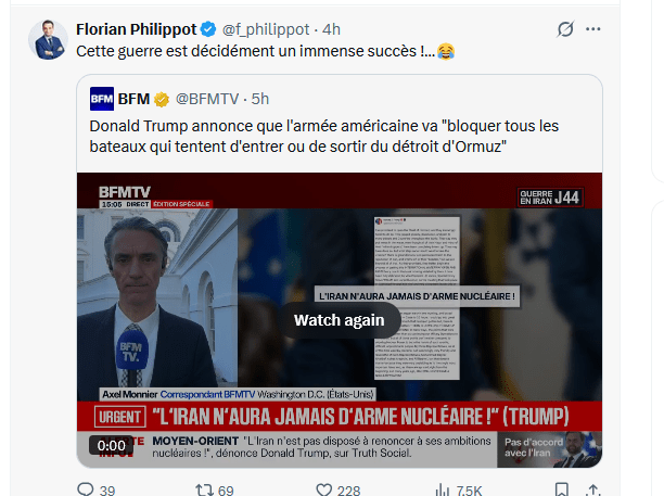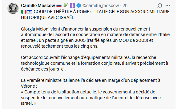 Macron a eu des velléités irresponsables d’embarquer notre pays dans la guerre du côté du Golfe Persique et de la Mer Rouge ; et je crois bien que « l’on » vend encore des armes aux dégénérés sionistes de l’Humanité.