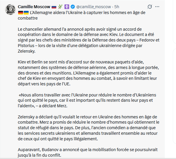 Rappelons que Merz est un homme d’affaire, entre autres choses ancien président du conseil de surveillance de la filiale allemande de BlackRock, et est membre de la CDU : l’union chrétienne démocrate de Germanie !