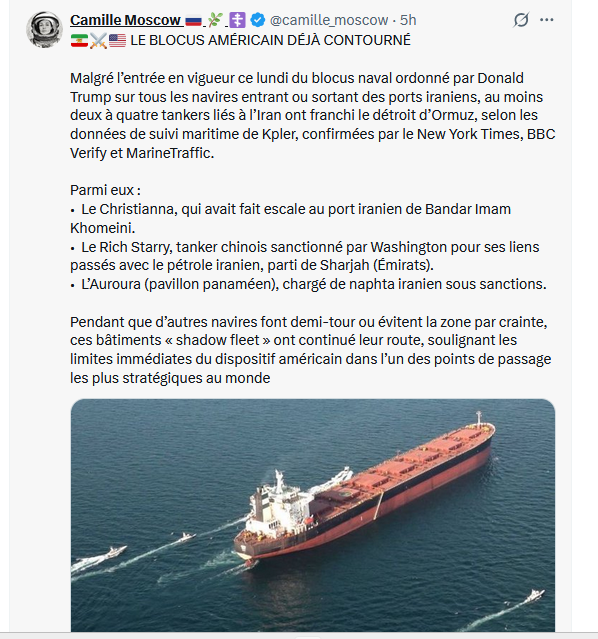 On pourrait ajouter encore que Donald, le nouveau messie atlantiste a lancé l’idée (il passe son temps à en lancer, toutes plus contradictoires ou incendiaires les unes que les autres) de poursuivre, de pourchasser sur les mers et océans du Monde entier, les navires de commerce, pétroliers, gaziers, porte-conteneurs, vraquiers… ayant oser traverser le détroit d’Ormouz et payer un droit de passage en bitcoins, yuans, roubles, roupies, enfin en non-dollar ; dollar monnaie prohibée.