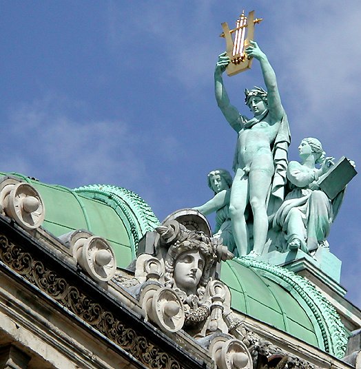 Et elle en veut au bel Apollon qui, du haut du ciel, la nargue avec sa phorminx en or des plus primitives à trois simples cordes, dressée fièrement, gaiement, orgueilleusement entre ses mains au-dessus de sa tête ; et lui, serti de la muse de la Poésie et de la muse de la Musique. Ne me demandez pas leurs noms. Plusieurs peuvent prétendre aux titres enviés. Ou pouvait le prétendre… autrefois… quand l’inculture n’était pas maîtresse d’un monde affligeant d’horreur et de médiocrité.