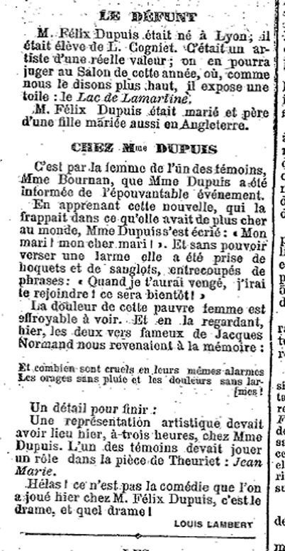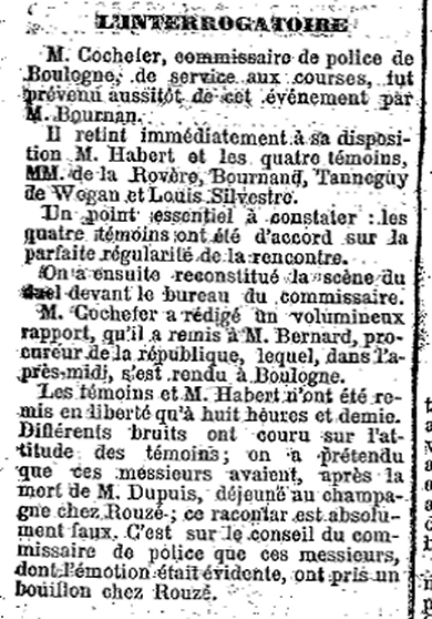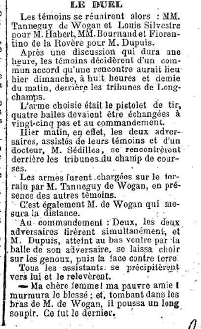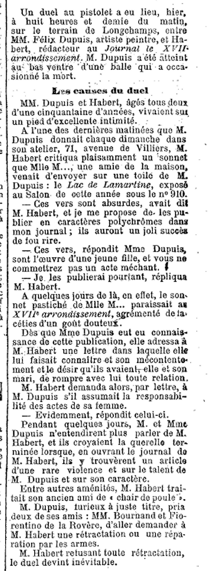 Nous n’avons pas d’autres renseignements sur Habert que : il était dans les âges de sa victime Dupuis, et il dirigeait un « petit journal » dans le XVIIe arrondissement de Paris.