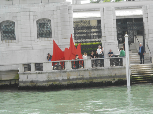 Merde commune de l’anart contemporain, plus ou moins de la couleur du minium dont on recouvre en première couche la coque des bateaux métalliques, à l’entrée de la fondation juive d’« art » moderne de Venise-la-polluée-en-tout. L’absence patente de tout savoir-faire artistique et la laideur. Les matériaux eux-mêmes… Autrement dit : la négation friquée et grotesque de l’Art dans une civilisation en total déclin. Le tout érigé en dogme « démocratique ».