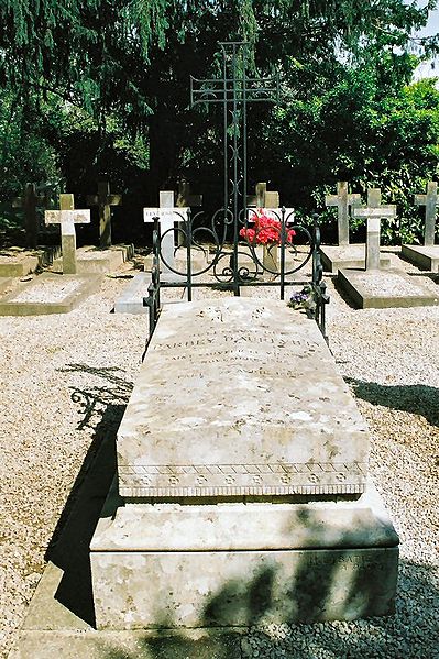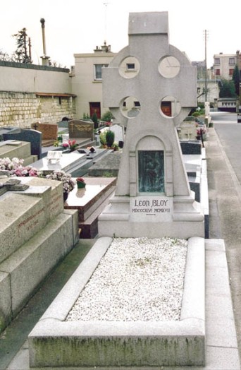 La troisième de notre série sépulcrale est la tombe de Léon Bloy, sans dalle centrale, mais simples graviers et surtout croix massive en pierre, tout d’un bloc comme le verbe lourd de Léon Bloy lui-même. Elle se trouve à Bourg-la Reine où ce dernier s’installa à la fin de sa vie, et en dernier lieu – nous dit-on – dans l’ancienne maison de Charles Péguy (la chrétienne baderne alors déjà morte à la tâche, passée du militantisme socialiste, anticlérical et dreyfusard au militantisme catholique et patriotisme belliciste).