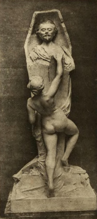 Cette protestation de la Poésie contre la mort, sujet constant des vrais poètes – « ma seule étoile est morte », « les morts, les pauvres morts… », « Ophélie… » – de qui ne sera jamais plus, du Rêve qui toujours fut, a été fort bien synthétisée par le ciseau de Frédéric Brou dans son Monument à la mémoire de Villiers de l’Isle-Adam. Monument singulier : une femme, la Gloire, s’attaque aux planches du cercueil du pauvre mort et le fait renaître.