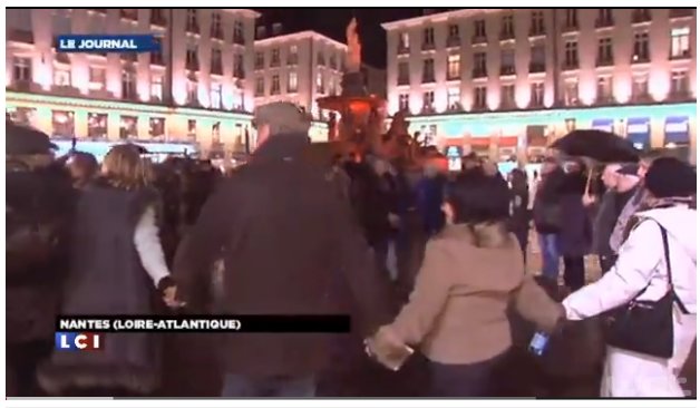 Il pleuvait sur Nantes ennuitée hier au soir, temps maussade ; courant entre les gouttes les nantais vaquaient à leurs occupations, alléchés par les soldes. Sur la place Ségolène, euh, pardon, sur la place Royale, la manifestation de la LICRA, vaste levée populaire d’au moins « moins de cent personnes », se perdait en folle farandole, reprenant en chœur le grand succès du jour : « Chaud ananas ! » immortalisé par le bamboula Mbala Mbala, l’antisémite notoire, multirécidiviste et vraiment impénitent.