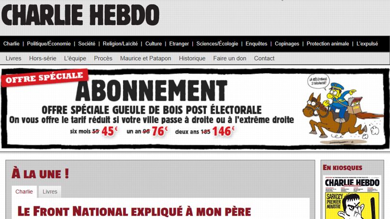Enfin, pour en revenir à Charlot : « votre ville vient de passer à droite ou à l’extrême droite? Vous n’envisagez pas de déménager ? Charlie vous soutient dans cette épreuve : on vous offre le tarif réduit pour tout abonnement pris jusqu’au mardi 8 avril inclus », explique les pantins et autres bobos de cette officine « humoristique » en voie disparition. Quelle misère ! C’est aussi drôle que «l’humour juif» d’un Bouvard ou que «l’humour homosexuel» d’un Ruquier. Je dirais même que c’est dans la droite ligne de notre grand humoriste quenello-merguezien, le petit Nicolas (Bedos).