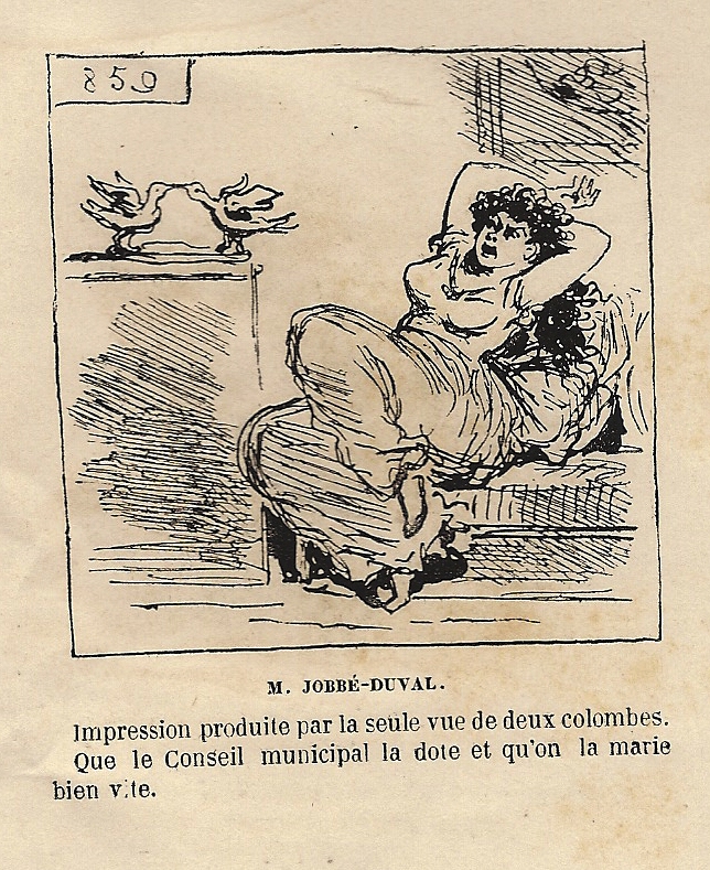 Lors de chaque exposition parisienne annuelle de peinture, il aimait bien se moquer de ses confrères de la peinture académique ou non. Mis en rapport avec les originaux, en voici quelques exemples tirés de « Le Salon pour Rire — 1872 — par Cham, en vente au bureau du Charivari » :