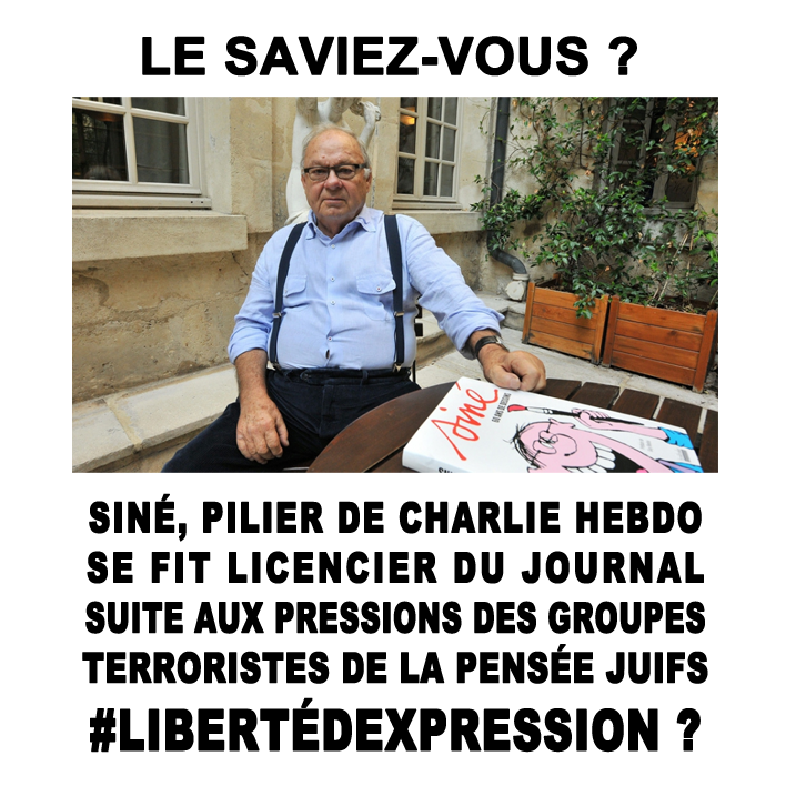 Siné n’est pas tout à fait un « facho » pourtant, c’est le type même du vieil anar sympathique, un vrai de vrai, lui au moins il n’a pas plié, DEMEURE TEL QU’EN LUI-MÊME et n’est pas devenu un ersatz d’anar sionisé.