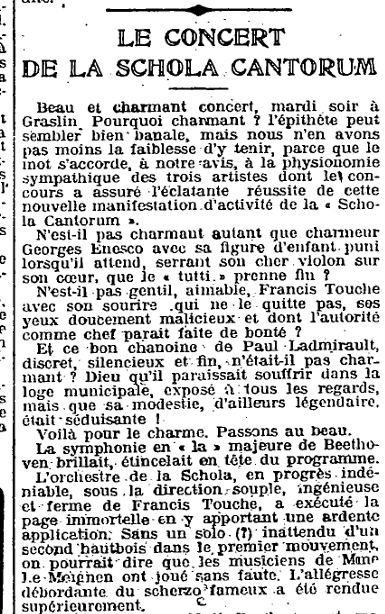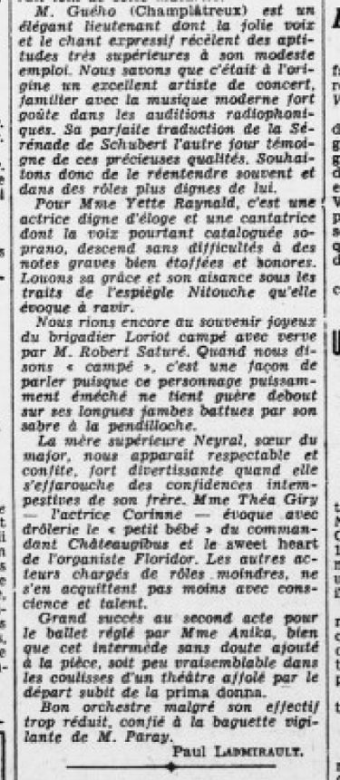 Pendant longtemps, Paul Ladmirault a tenu une chronique théâtrale (et musicale) dans ce même journal Ouest-Éclair (l’ancêtre de l’actuel Ouest-France). En voici une datée du 28 octobre 1935 :
