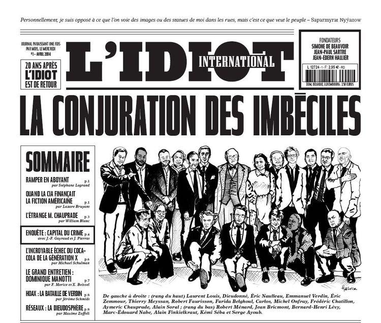 La Vie Parisienne revisitée mais sans humour aucun, tel un opéra-comique saboté par une mise en scène à la feu Savary, celle des beaux-beaufs, me débecte, aussi ce n’est qu’avant-hier incidemment, en cherchant tout autre chose sur Internet, que j’ai appris l’existence d’une nouvelle version de l’Idiot International, soit plus d’un an après. Et semble-t-il d’un ersatz des premières manières, un peu comme le Charlie Hebdo actuel par rapport au Charlie (pour parler novlangue…) « historique » des années soixante-dix.