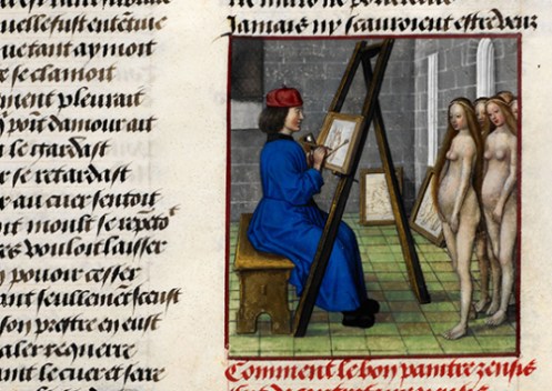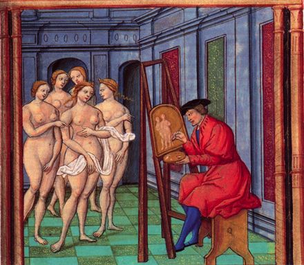 Zeuxis peignant les filles de Crotone (Roman de la rose, ms Harley 4425)