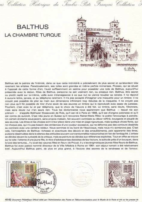 oui, il existait (encore il y a moins de quarante ans) des périodes en France où il y avait des timbres pour rendre hommage à Balthus (voir document suivant);