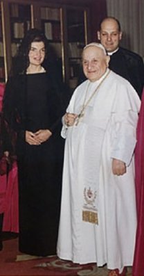 Jackie Kennedy lors de sa visite au Vatican, entre 1961 et 1963, sous le pontificat d’il bueno papa, Angelo Roncalli, le débonnaire et rondouillard Jean XXIII bis 1, instigateur des réformes (finalement destructrices, du point de vue catholique) de Vatican II.