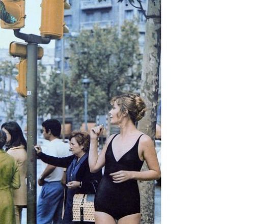 Modelo con faja [maillot une pièce] en las Ramblas de Barcelona en 1970 (Archivo Andrés Sardá íntimo).