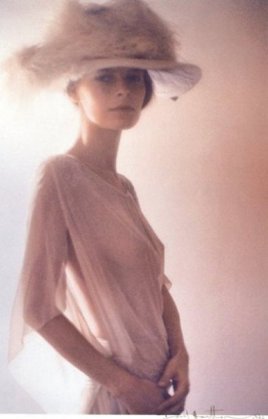Photo David Hamilton — Jeune femme au chapeau, 1975, tirage couleur d’époque, signé et daté à l’encre sur l’image, 31 x 20, 2 cm (source : enchères hôtel Drouot)