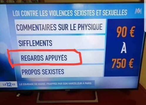Tant le moindre policier ou gendarme de base que l’homme de la rue a déjà parfaitement compris que, par exemple, des « regards appuyés » était une notion totalement subjective et ne pouvant décemment relever de quelque loi ou délit que ce soit, sauf dans les esprits malades de ceux qui font les lois, quand du moins ils ont le courage de les voter ou… ne les pas voter ((92 voix pour, 8 abstentions et aucune voix contre).