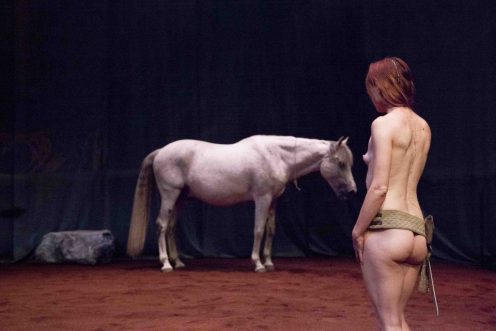 Mardi dernier, les téléspectateurs de RTS (Suisse), en regardant le journal de la mi-journée, n’en sont pas revenus : la rédaction a autorisé, sans avertissement préalable, la diffusion d’un extrait de Hate, pièce dans laquelle Laetitia Dosch s’exhibe à poil. Décidément, à poil devient une manie ! Mais, cette fois, avec un cheval. On progresse.