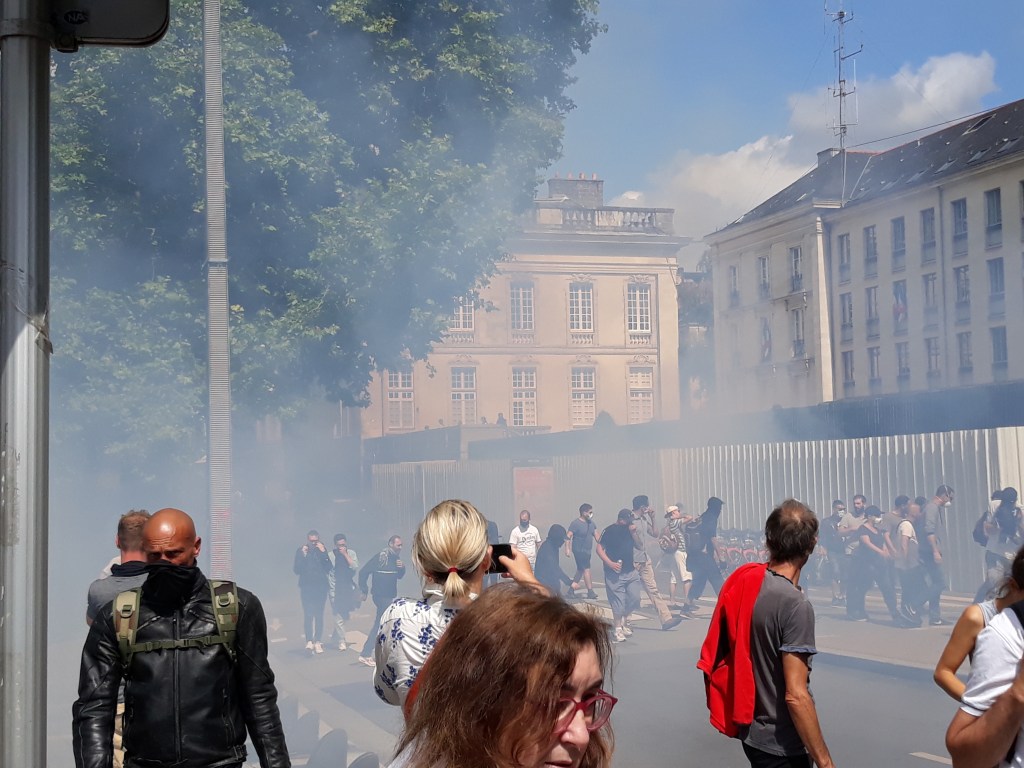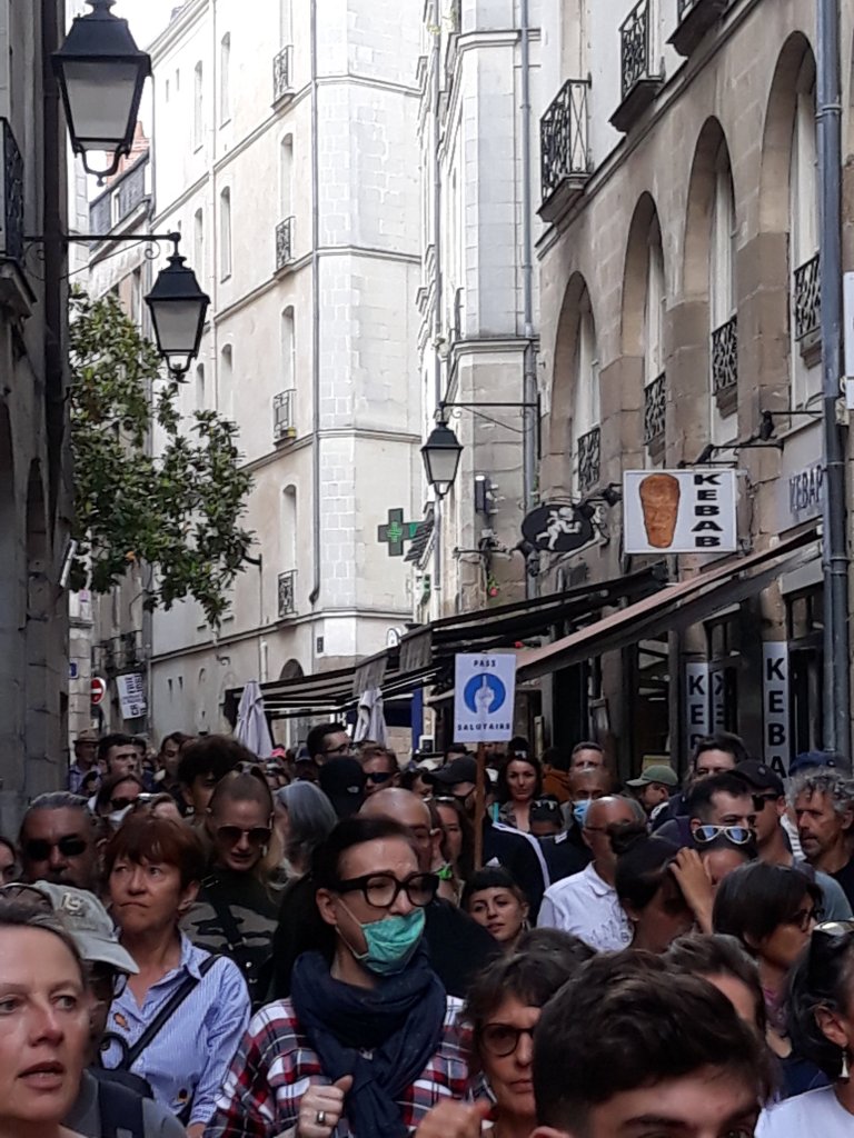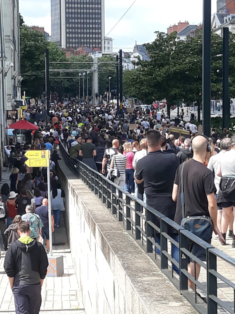 Hier beaucoup de chaleur humaine donc dans le centre de Nantes, on était au moins mille, peut-être deux ou trois mille au plus fort de la manif qui a fait toutes les principales rues du centre-ville de Nantes.