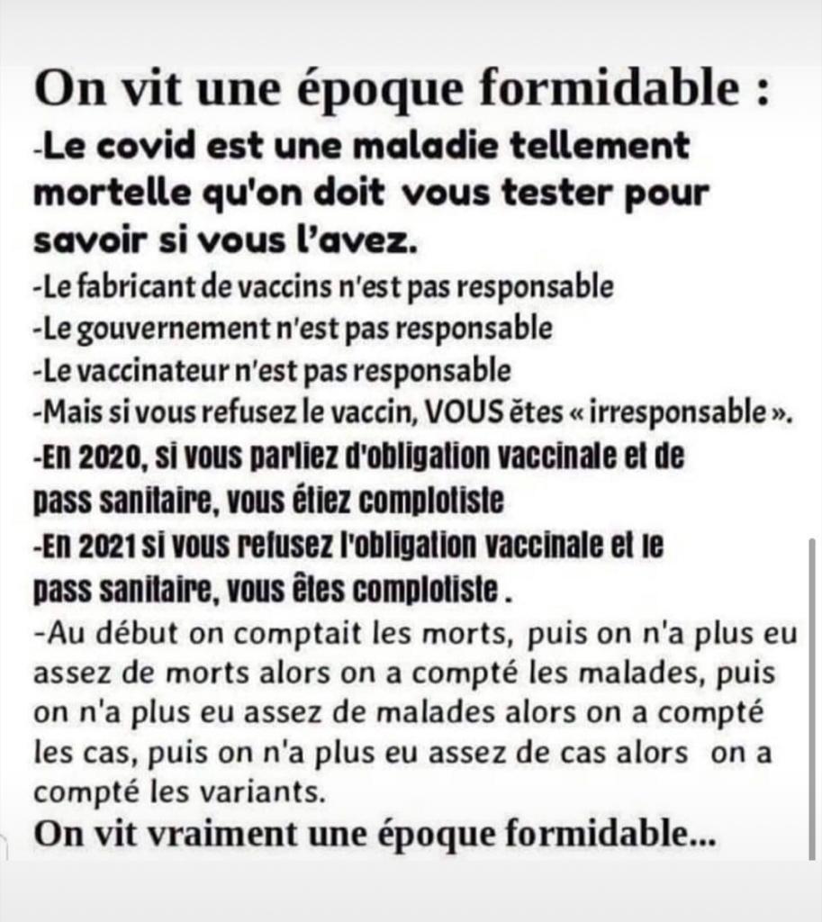 Qui ne voit pas l’arnaque ! Et la folie furieuse gouvernementale totalitaire et … criminelle (pour ne pas dire meurtrière) depuis plus d’un an et demi ?!