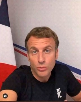 Macron qui s’affiche depuis Brégançon avec un tee-shirt du Bohemian Club société secrète et confrérie maçonnique sur #instagram pour faire la promotion d’une vidéo Tik Tok et lutter contre les fakes news [sic]. Le nouvel ordre mondial avance désormais à visage découvert…