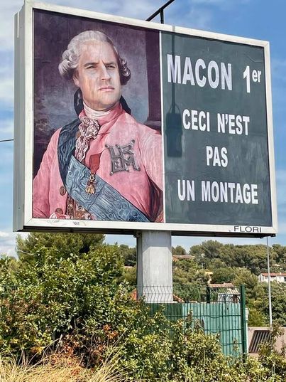 « Michel-Ange Flori, contre qui Emmanuel Macron a déposé plainte après que celui-ci l’a grimé en Adolf Hitler, a dans un nouveau montage affiché une image du chef de l’Etat déguisé en monarque, rebaptisé «Macon 1er». La plainte déposée par Emmanuel Macron ne l’aura pas découragé : Michel-Ange Flori, l’afficheur varois à l’origine de la caricature du chef de l’Etat en Adolf Hitler récemment placardée dans le sud de la France, vient de créer une nouvelle affiche représentant cette fois le président de la République en monarque du XVIIIe siècle, rebaptisé «Macon 1er» et accompagné de la légende «ceci n’est pas un montage». Sur son compte Facebook, Michel-Ange Flori a publié une photo de sa nouvelle affiche, accompagnée de ce message : «L’insignifiant Macon 1er voyant la fin de son règne s’approcher et n’ayant plus de solution au déroulement chaotique de son destin finit par se venger en poursuivant un de ses sujets pour blasphème.» »