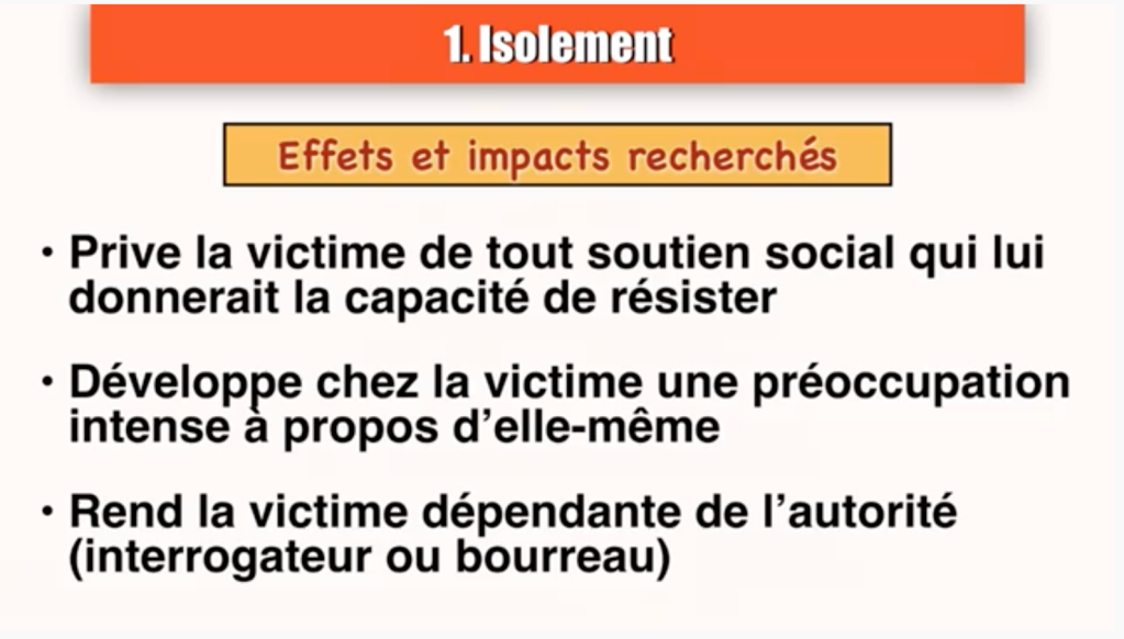 Les 8 critères de tortures psychologiques de la charte Biderman