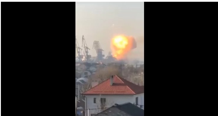 Au matin du 24 mars, dans le port de Berdiansk situé à l’Ouest de Marioupol, le « Orsk », un grand navire de débarquement russe ainsi que plusieurs dépôts maritimes sont en feu.