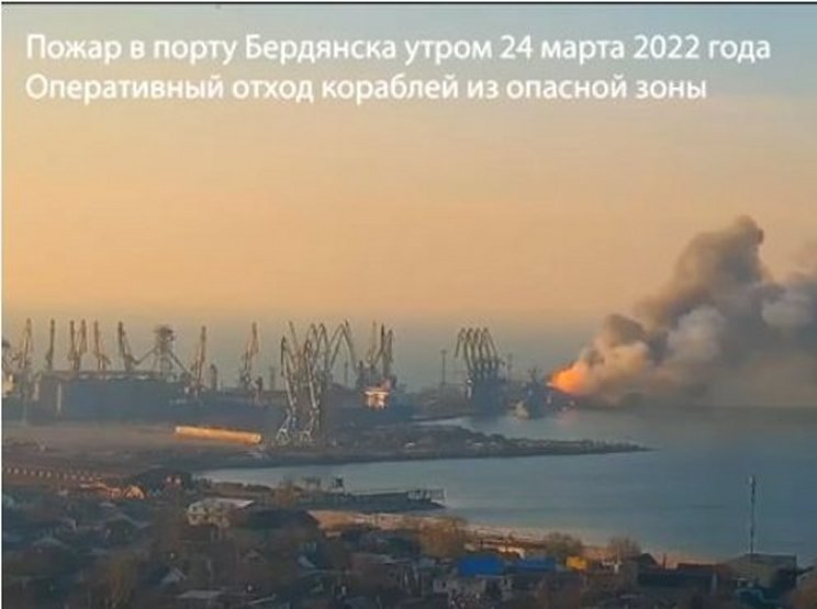 24 mars 2022 matin, à 68 km à l’Ouest de Marioupol, le port de Berdiansk est en feu.