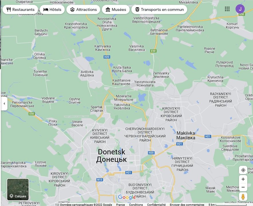 Avdeevka/Avdiivka (autre chaudron potentiel où seraient retranchées quatre mille hommes, du moins c’était ce chiffre qui était avancé il y a un mois de cela, et qui fait tant de mal à la ville de Donetsk). Et quelques autres endroits secondaires.