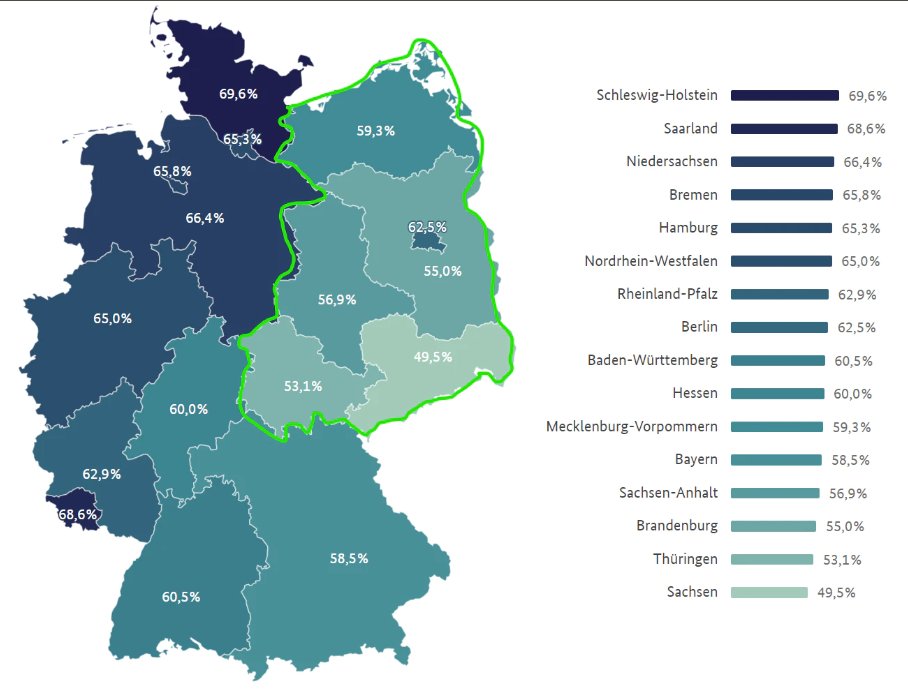 — qu’une partie du Sud de l’ancienne RFA est moins touchée, mais un peu plus que l’ancienne RDA.