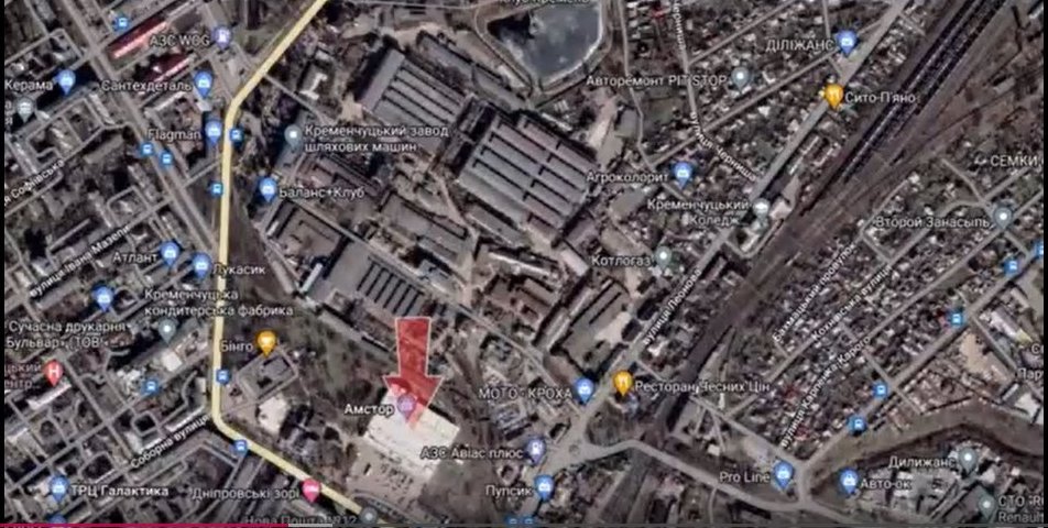 « Selon les Russes, l’objectif de ces frappes était l’usine située juste au nord du centre commercial, une usine fabriquant des véhicules, appelée Kredmash, Kremenchutsʹkyy Zavod Shlyakhovykh Mashyn (nom complet en ukrainien). L’observateur averti notera qu’aucune des sources citées plus haut ne mentionne l’existence même de l’usine. Cette usine servait, toujours selon eux, de centre de stockage pour des armes et des munitions fournies par l’Occident. »«