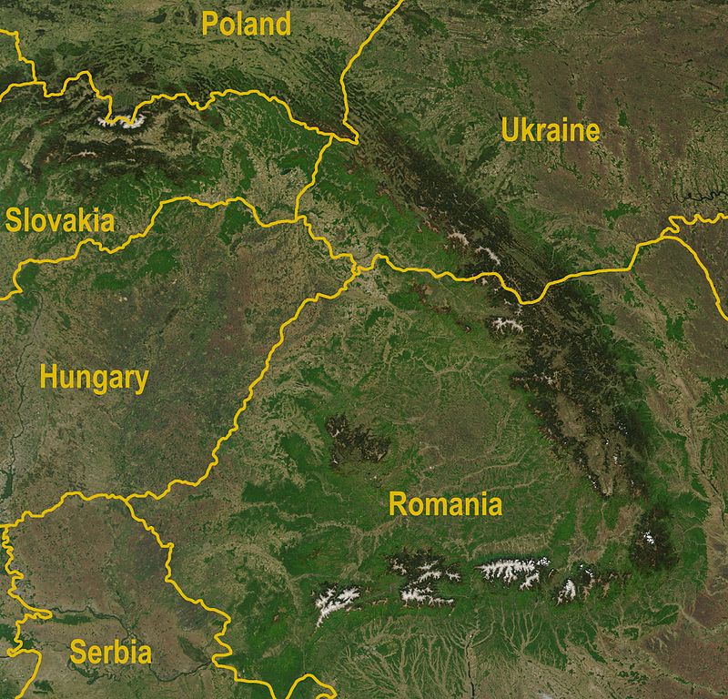 L’arc des Carpates (photo satellite) :