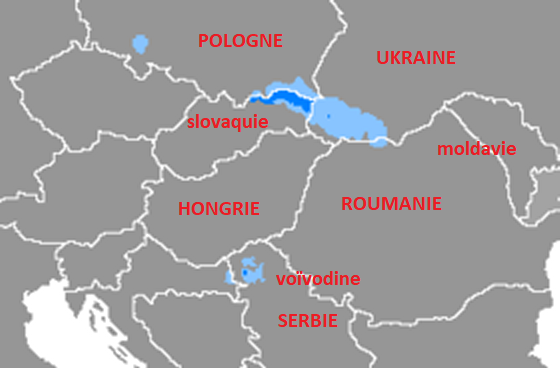 Extension des dialectes du rusyn :