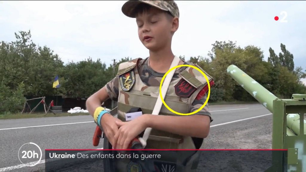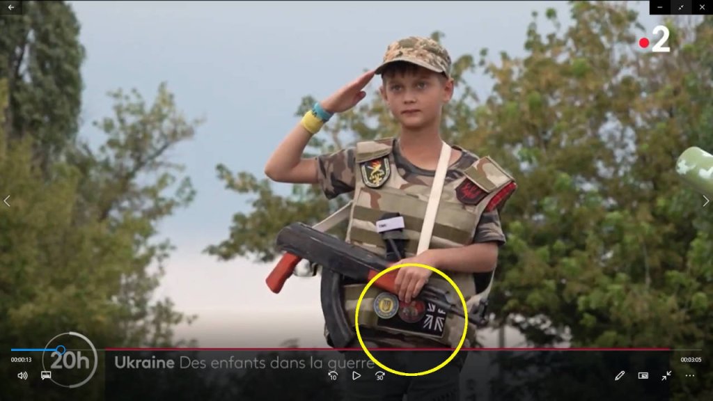 En clair, France 2 en tentant de faire une réédition à l’ukrainienne du jeune patriote russe Aliocha nous en a offert une des jeunesses hitlériennes sauce Kiev, avec salut nazi, chevron d’une unité qualifiée à minima d’ultra-nationaliste, et drapeau d’une unité néo-nazie. Et il ne suffira pas de dire que ce n’est pas vrai pour masquer la réalité…