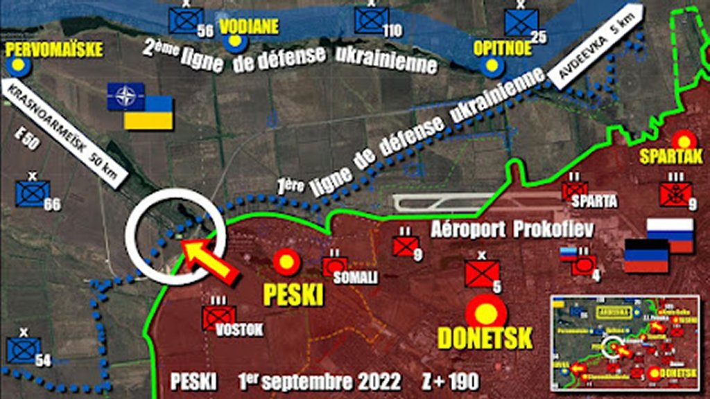 D’autres secteurs du front allié sont sous la menace de nouvelles attaques ukrainiennes: Liman et Lisichansk, au Nord et à l’Est de Slaviansk, encore Peski au Nord de Donetsk, mais aussi Vougledar entre Donetsk et Volnovakha sur le front Sud de la République Populaire de Donetsk.