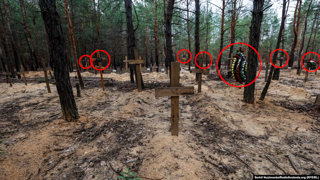De plus, si les Russes avaient réellement massivement exécuté des civils à Izioum, pourquoi se seraient-ils embêtés à les enterrer individuellement avec une croix et tout le rituel funéraire adéquat ?