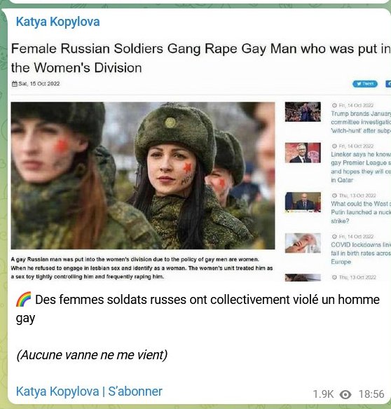 La propagande occidentale ne sait plus quoi inventer ! : des « soldats femelles russes ont violé un homme gay »