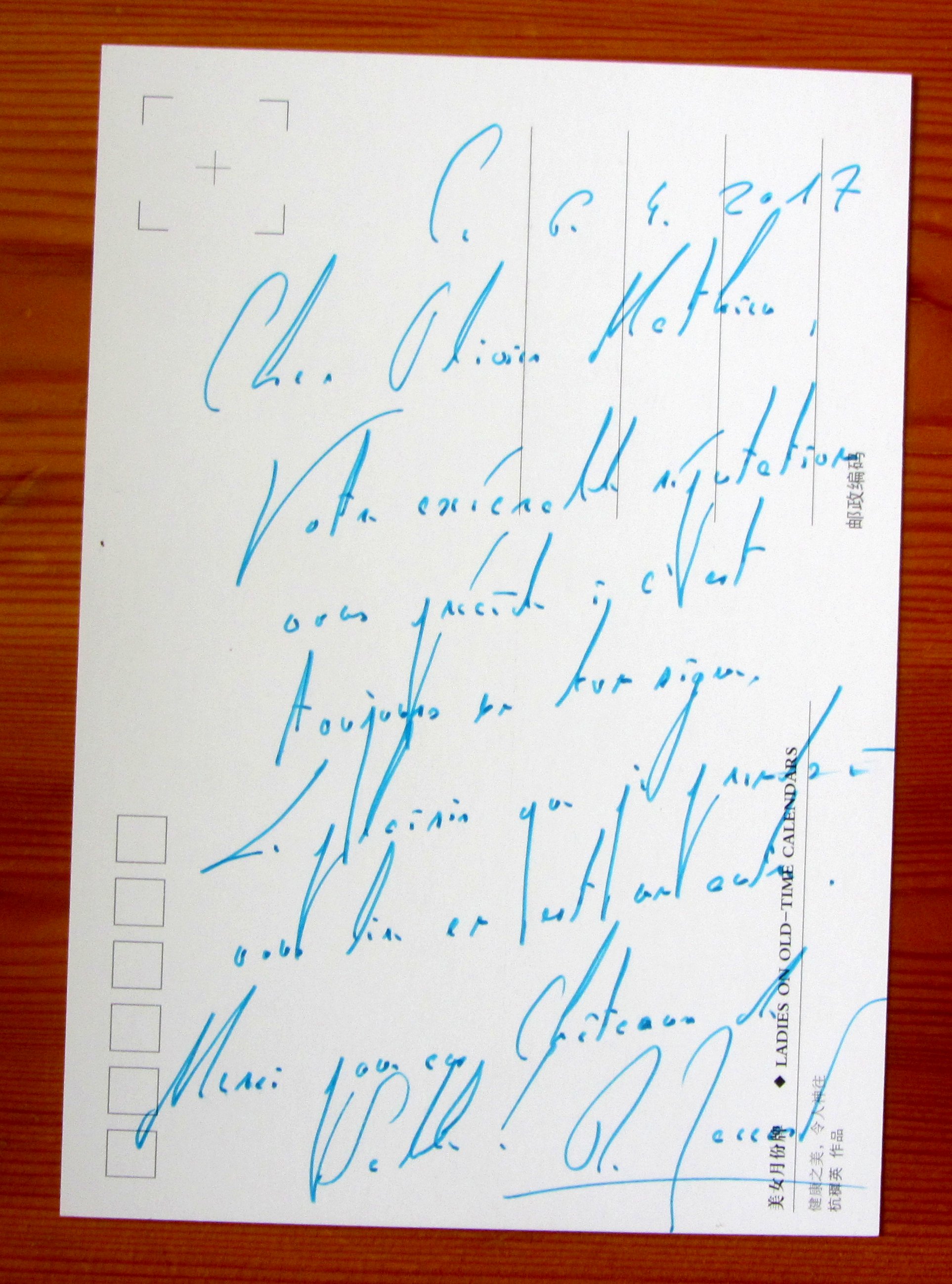 Une lettre de l’écrivain suisse Roland Jaccard (1941-2021) à Olivier Mathieu.