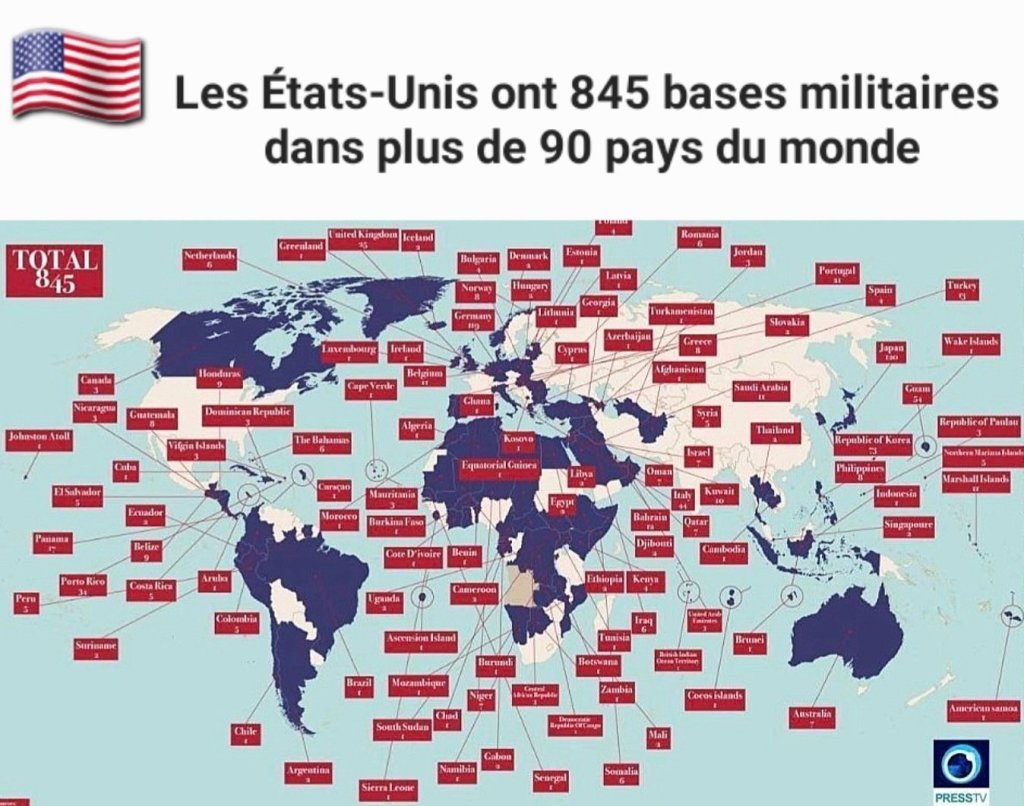 Et la carte des bases militaires étatsuniennes dans le Monde :