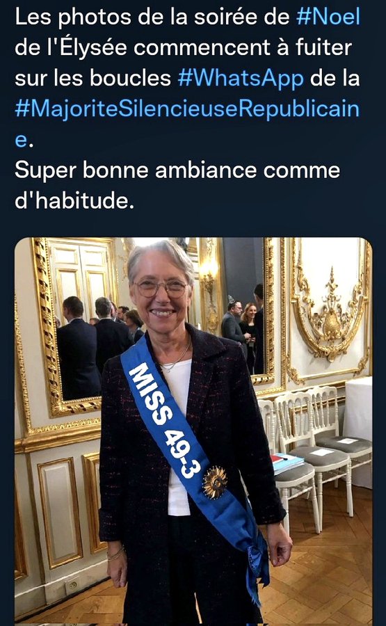 Le 22/12/22,les ministres se cotisèrent pour offrir à Borne un maillot de l’équipe de France marqué « 49-3 » pour rire de son 10e passage en force à l’Assemblée.