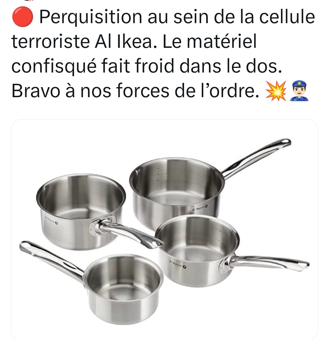 La saisie de casseroles par les services de Darmanin dans l’Hérault, – pour protéger Macron de la foule des manifestants -, fait rire la France entière.