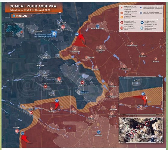 Sur la carte ci-dessus ce qu’il est important de noter, c’est que l’encerclement et la destruction progressive de plusieurs lignes de défense sont en train de faire de cet endroit un champ de ruines. Ce qui au-delà de l’échec ukrainien, tout proche en ce lieu, donnera néanmoins satisfaction à de tristes individus de voir une ville du Donbass totalement détruire et totalement à reconstruire.
