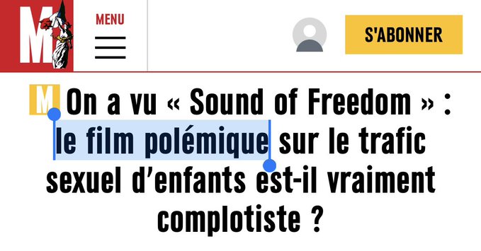 « Pourquoi film « polémique » ?! C’est délirant ! #SoundOfFreedom est un film qui expose des faits ! Oui, ces faits sont très graves et dérangent manifestement une oligarchie qui préférerait qu’on n’en parle pas, mais les faits sont là ! Continuons à faire la pub de ce film ! »