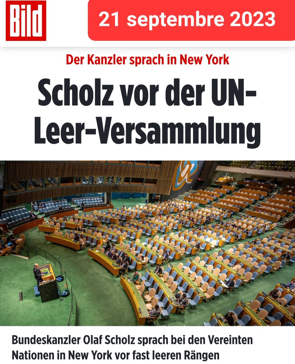 SCHOLZ PARLE DEVANT L’ASSEMBLÉE GÉNÉRALE DE L’ONU QUASIMENT VIDE !