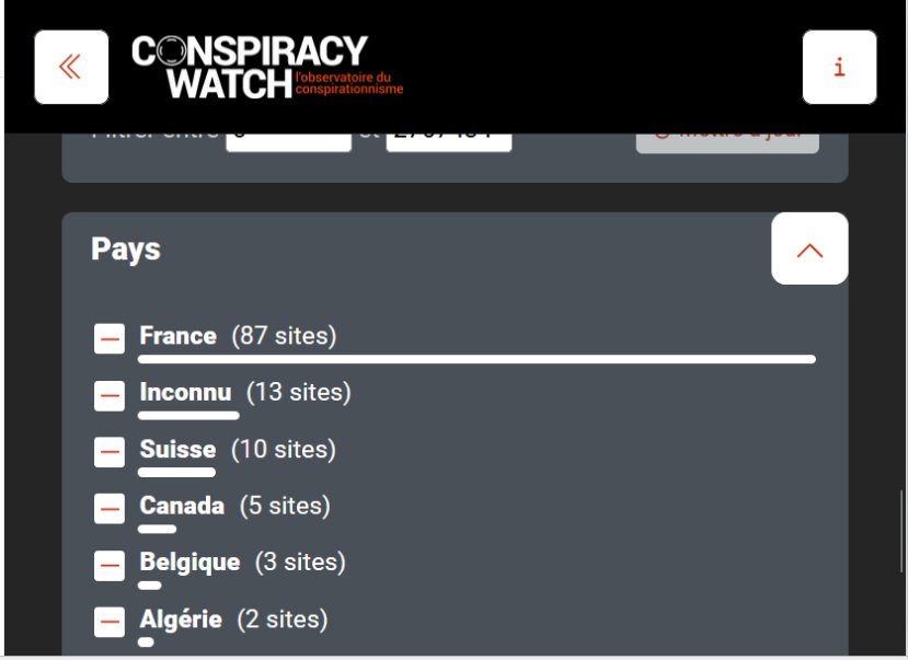 À défaut d’être eux-mêmes beaucoup consultés (il paraît que c’est devenu « la cata » pour eux les subventionnés, à ce niveau), ils établissent des statistiques régulières, non pas sur les complots et les conspirations, mais sur les sites ci-devant déclarés par eux « complotistes / conspirationnistes ».