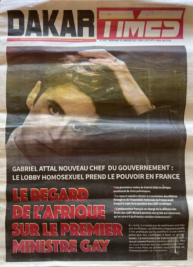 Pour être complet ajoutons, ce que semble ignorer ce journal africain, que le tout nouveau ministre de l’Europe [sic] et des Affaires étrangères dans le gouvernement Attal est un certain Stéphane Séjourné, un ex-socialo conseiller de macron au ministère de l’Économie, puis conseiller (je ne sais pas en quoi consiste ses conseils) du même macron élu président ; député européen président du groupe « Renew Europe » (sic) à partir de 2021, puis secrétaire général de Renaissance, nouveau nom de La République en marche, en septembre 2022.